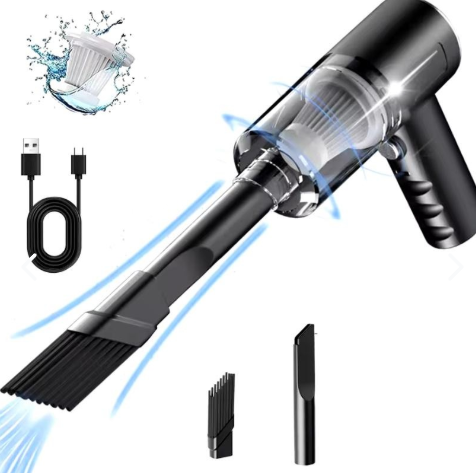 Características:1. Aspiradora multifuncional: la aspiradora se puede utilizar para limpiar áreas de difícil acceso. La aspiradora de mano puede ser un limpiador de computadora portátil, aspiradora de escritorio, aspiradora de mano para automóvil, piano, casa de mascotas, limpieza de escritorio de oficina, etc.2. Inalámbrico y recargable: USB recargable, viene con un cable de carga, que se puede conectar a un ordenador portátil, puerto de carga USB del coche, fuente de alimentación móvil, etc.3. Filtro HEPA lavable: el filtro HEPA es lavable y reutilizable, lo que mantiene el polvo y la suciedad fuera para evitar el bloqueo. Saque el filtro de la taza de polvo de la aspiradora, lávelo con agua y séquelo para un segundo uso. (Consejo de uso: si el filtro de vacío está lleno de suciedad o debilidad por la succión, limpie el filtro a tiempo para asegurarse de que el eliminador de polvo pueda funcionar normalmente).4. Succión fuerte de 5,5 KPa: la aspiradora de coche de mano tiene una succión fuerte de 5,5 Kpa, adecuada para las tareas domésticas diarias para limpiar el polvo.El Motor de superpotencia de 120W de potencia de salida proporciona una fuerte succión de hasta 5500PA, que puede eliminar rápida y fácilmente los residuos de alimentos, partículas y pelo de mascotas alrededor de la casa o en el automóvil. La operación móvil inalámbrica de vacío húmedo/seco es más conveniente.5. Aspiradora multifuncional: aspiradora de coche profesional inalámbrica de mano, hace que su coche y su hogar estén limpios todos los días. La aspiradora de mano tiene un cuerpo ligero y pesa solo 0,30 kg. No es cansado de sostener durante mucho tiempo y es especialmente adecuado para personas mayores y mujeres.EspecificacionesNombre del producto: Aspirador inalámbricoColor: negroMaterial: ABSFiltro: HEPA lavable y reutilizableGrado de succión: 5500PaRpm: 5000Motor: núcleo de cobre de 120WDuración: 20-30 minutosBatería: Batería de litio recargable incorporadaCarga: Carga rápida USB tipo CEmbalaje: en cajaEl paquete incluye: 1 boquilla de cepillo. 1 boquilla de hendidura. 1 aspiradora de mano, 1 cable de carga USBtipo C